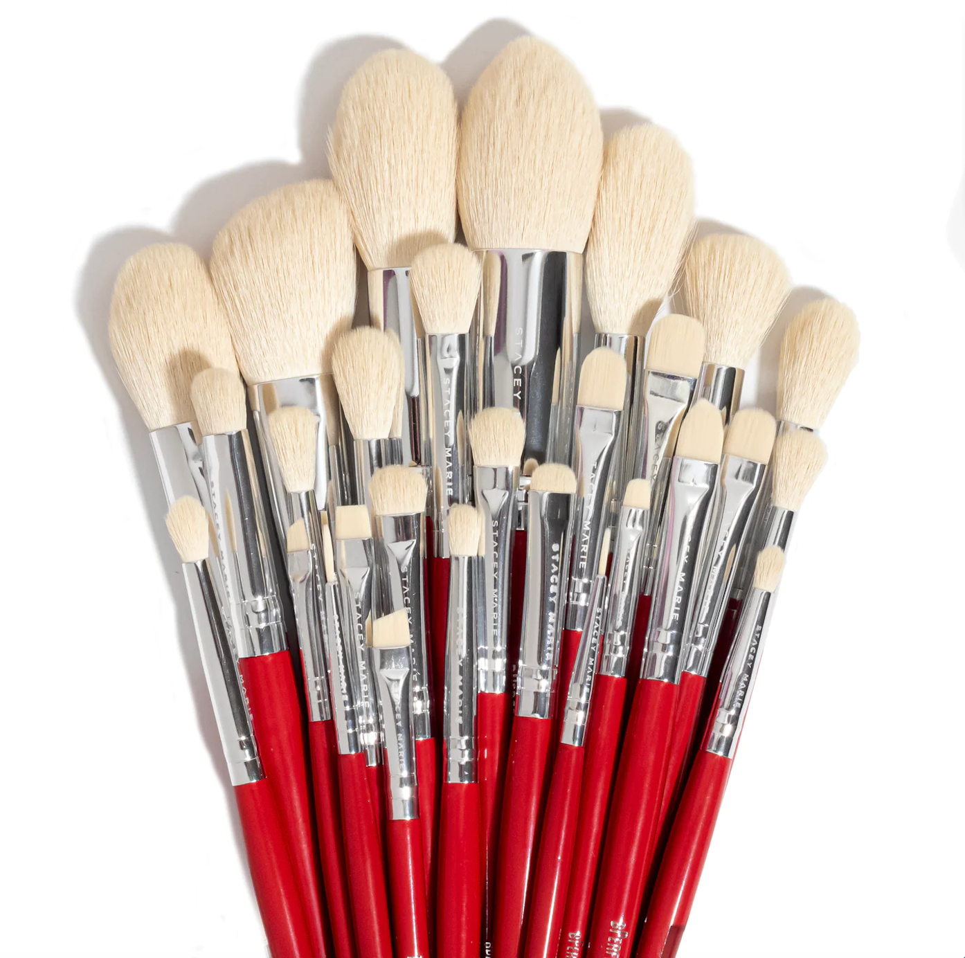 Enorme boîte contenant 28 pinceaux pour le teint et les yeux, une éponge et une serviette. Avec ce set vous pourrez absolument tout faire!