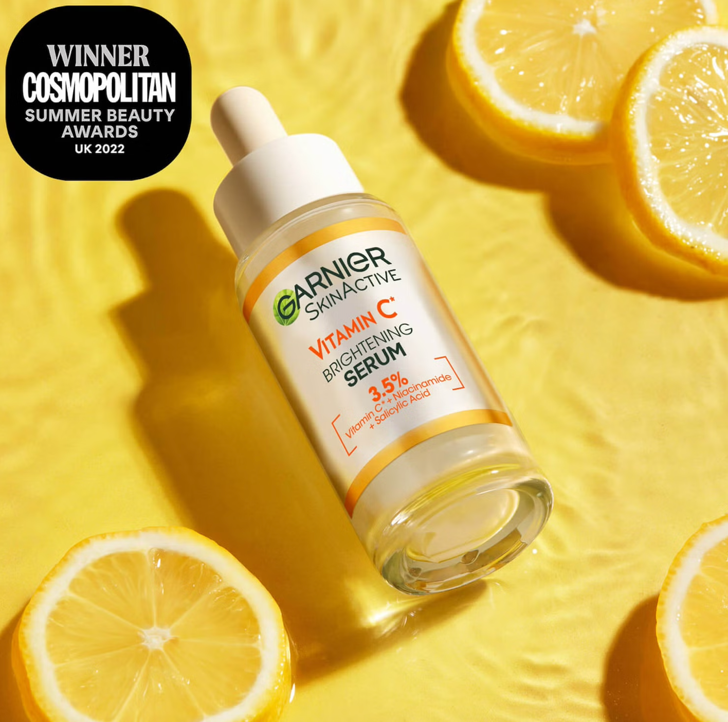 Aqua (water), glycerin, alcohol, dipropylene glycol, butylene glycol, niacinamide, polybutylene glycol-8/5/3 glycerin, hydroxyethylpiperazine ethane sulfonic acid, bis-peg-18 methyl ether dimethyl silane, isononyl isononanoate, 3-o-ethyl ascorbic acid, citrus junos fruit extract, lemon fruit extract, sodium citrate, sodium hyaluronate, adenosine, phenylethyl resorcinol, ammonium polyacryloyldimethyl taurate, disodium edta, hydrogenated lecithin, citric acid, maltodextrin, xanthan gum, oxothiazolidinecarboxylic acid, tocopherol, tocopheryl acetate, salicylic acid, phenoxyethanol, linalool, geraniol, limonene, benzyl alcohol, benzyl salicylate, fragrance